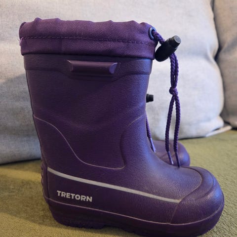 Tretorn gummistøvler i størrelse 27. Støvlene er synlig brukt, men hele og fine, kan ikke se noe slitasje.