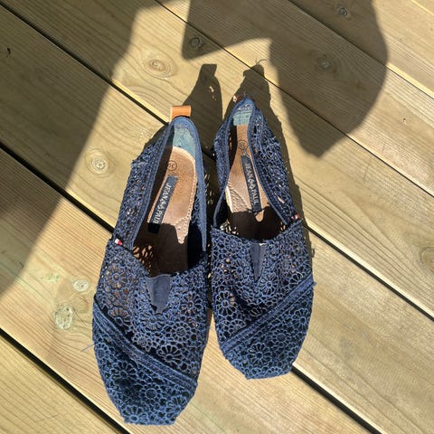 Jean Paul ballerinasko i størrelse 39. Skoene har et mønstret design med hullmønster og er svarte. De har en flat såle med mønster for grep. Brukt et fåtall ganger.