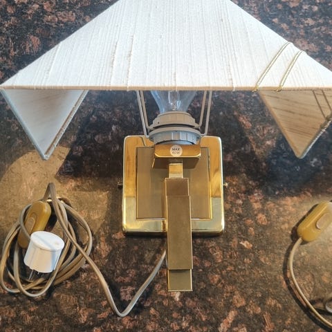 Nydelig vegghengt krystall lampe i god stand. Det følger med to lampeskjermer, som vist på bildet.