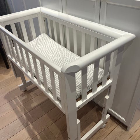 En fantastisk bedside crib som faktisk går til høy seng. Vi lette lenge etter en som går til høy seng, før vi fant denne. Den har mange høydejusteringer også, så veldig fleksibel. Kun brukt til ett barn i 3mnd, så den ser het ny ut. Selger gjerne til noen som kan hente.