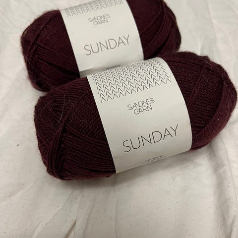 Sandnes Garn Sunday garn i fargen 6042. Selges samlet (5 stk) til svært lav pris ettersom 2 av dem er fra ulike partier enn resten. Fargen ser helt identisk ut.