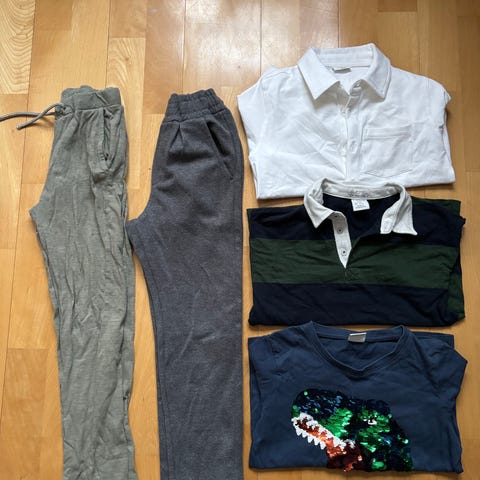 Klespakke str 116 gutt. Skjorter, langermet shirts, jeans shorts,