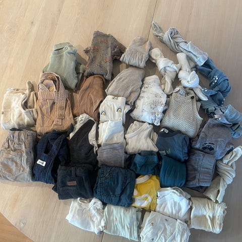 Newbie bodyer og bukse i størrelse 68 for barn. Bodyene er hvit med et mønster av små motiver. Passer for både jenter og gutter. Noe flekker på bodyene derfor billig