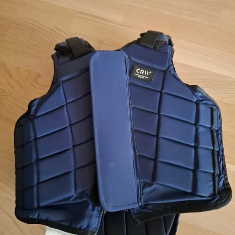 "CRW Jupiter beskyttelsesvest i størrelse M, marineblå farge. Vesten er laget for å gi beskyttelse og oppfyller standard EN13158:2018 nivå 3. Brystmål ca. 65-72 cm. Egnet for bruk innen ridning og andre aktiviteter som krever kroppsbeskyttelse."