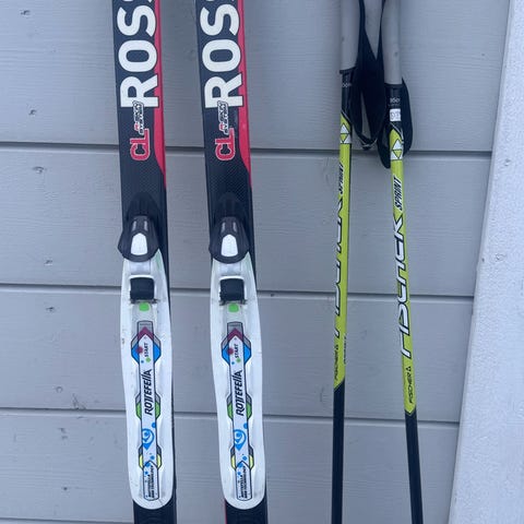 Rossignol R-Skin Speed langrennsski med lengde på 120 cm. Skiene har integrerte fell for bedre feste og er egnet for klassisk langrenn. Passer til bruk i preparerte løyper. Pris 500kr.