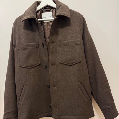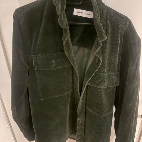Samsøe Samsøe jakke i størrelse S. Jakken er laget av grønn cordfløyel og er designet for menn. Passer som ytterplagg i ulike utendørssituasjoner.