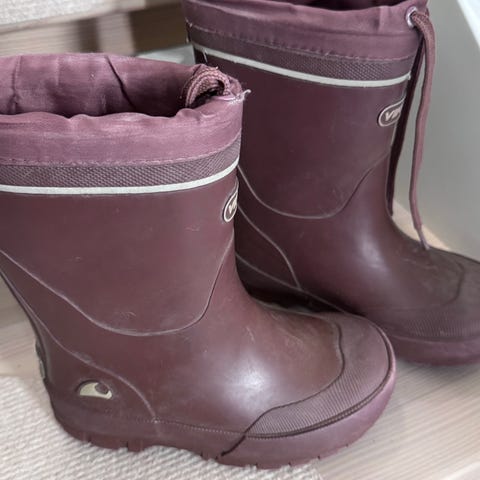 Brukt av ett barn. Et lite hull i foret og bruksmerker slitt på helen. Mye bruk igjen. Veldig lette og gode vintersko.