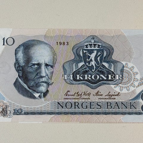 4 stykk 10kr sedler, år 1977, 1983, 1983