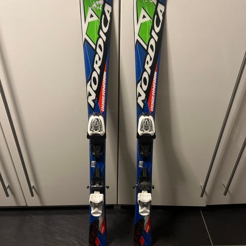 Dette er et par brukte Head Frost alpinski med bindinger.