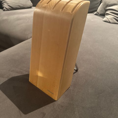 Fiskars knivblokk laget i tre med metallstøtte. Designet for oppbevaring av kniver med flere spor for ulike knivstørrelser. Selges uten kniver, og brukes ikke da vi oppbevarer knivene på magnetstripe 😊