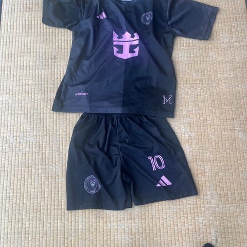 Nike Manchester United fotballsett for barn i størrelse 68. Settet består av en kortermet trøye og shorts i mørk farge med klubbens logo og Nike-merke.