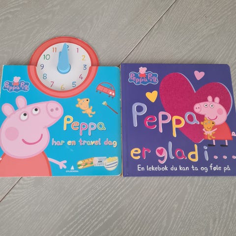 10 Peppa gris bøker og figurer som på bildene.