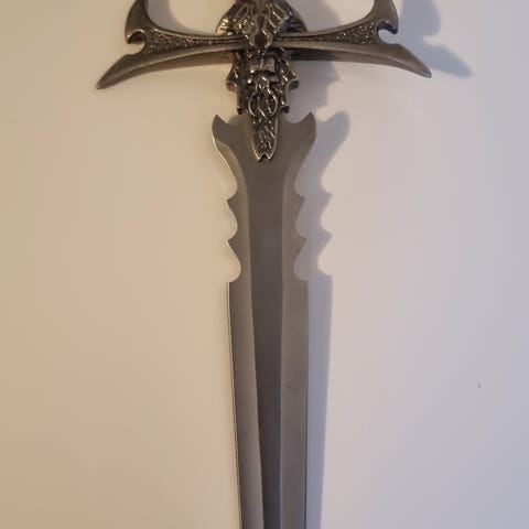 Pynte kniver 48cm og 43cm på planke.