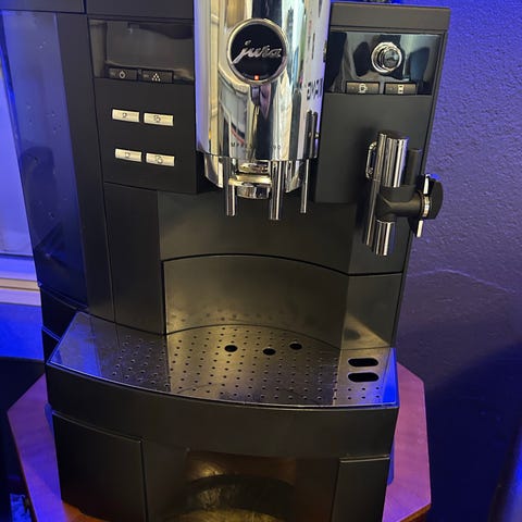 Telleren viser den har laget 5800 kopper kaffe, og for en Jura kaffemaskin er det visstnok bare begynnelsen, i følge kjennere. I tillegg kan alle deler byttes ut/repareres/ service, da Jura er et utbredt merke.