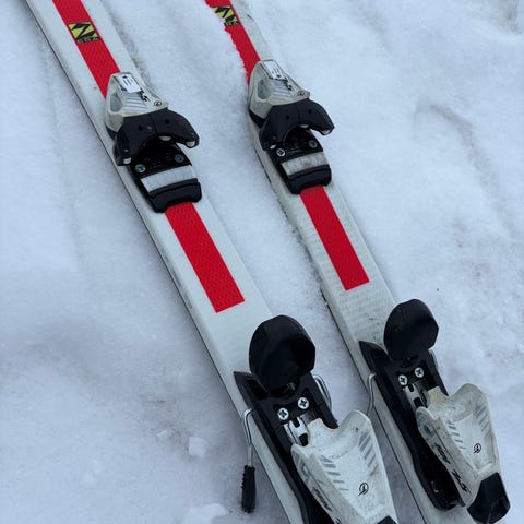 Elan Explore 144 cm ski med bindinger. Skiens design inkluderer svart og rød farge, og er en allsidig alpinski. Bindingene er integrert på skiene. Må hentes. Ingen pruting.