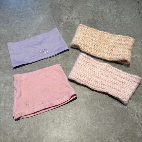 Pent brukt sett med pannebånd og hals fra Johaug og Kari Traa selges samlet for 100,-.