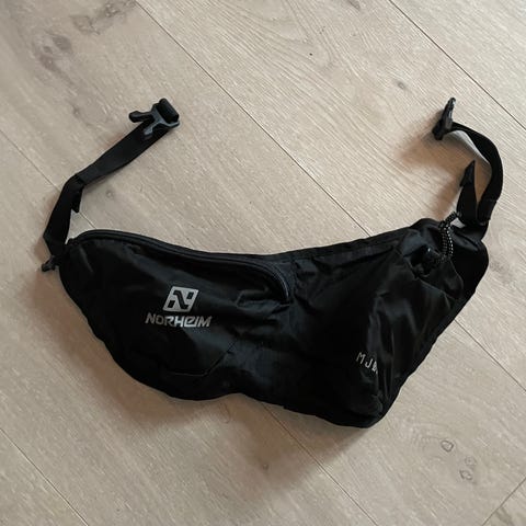 Bergans hoftepose, designet for løping og annen sport. Vesten har flere lommer for oppbevaring og justerbare stropper for god passform. Kombinasjon av svart, rød og grå farge. Unisex-modell.