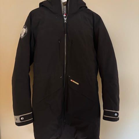 Selger en pent brukt sort Vinterparkas fra Helly Hansen i str S. Den er veldig god og varm jakke med behagelig hette med innstramming. Har refleks på hver arm, to store romlige lommer foran og en liten på brystet.