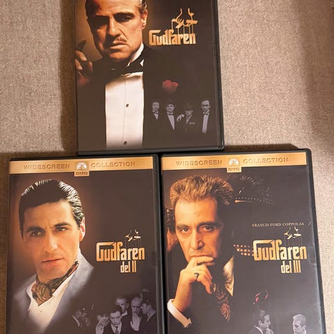 Gudfaren trilogi på VHS i Widescreen Edition. Inneholder filmene Gudfaren, Gudfaren II og Gudfaren III. Samt Donnie Brasco