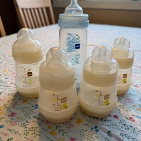 5 stk MAM flasker med lokk (2x260 ml, 3x130ml)