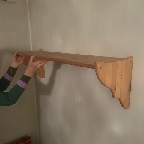 Søkeord: Kjøkkenhylle hylle furuhylle trehylle sminkebord bord vegghengt møbler ubehandla natur trehvit