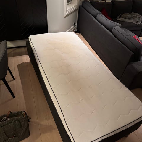 Selger denne fine kontinentalsengen fra IKEA. Sengen består av Espevär kontinentalramme, Hokkåsen madrass og Tustna overmadrass. Sengen ble kjøpt ny for en del år siden men har nesten ikke blitt brukt ettersom den har stått på gjesterommet. Nyprisen lå på rundt 8000kr for hele sengen.