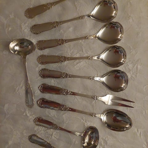 Pent brukt Anrettnings skje og teskje I mønster Prins kr 200