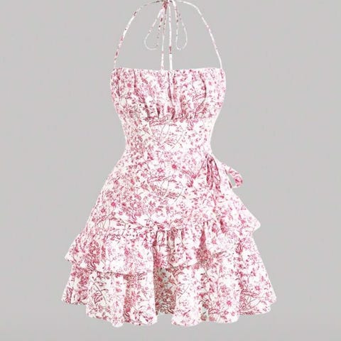 Shein Sommerkjole i størrelse XS, rosa farge, laget av viskose. Kjolen er designet for kvinner og har et sommerlig preg med lett materiale.