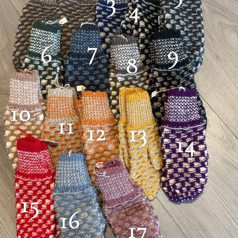 Søkeord: gave, håndstrikket, votter, hjemmestrikk, ull, vanter håndarbeid