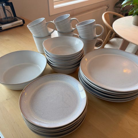 Skålene og djupe tallerkenar er kjøpt i 2020, frukosttallerkena er kjøpt før dette men usikker på årstal. Godt brukt, men framleis mykje bruk igjen. Selgast samla for 500kr 😃