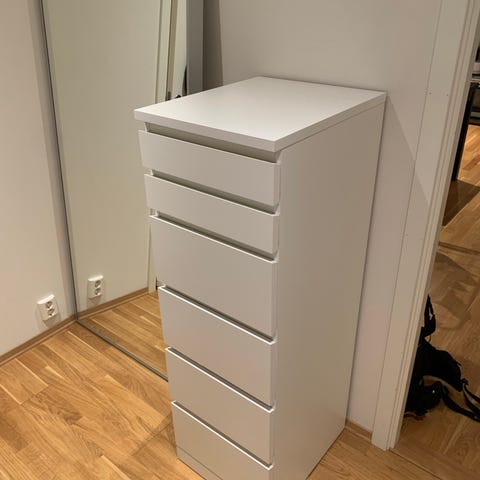 Ikea malm kommode med 3 skuffer selges. Noen små bruksmerker, men god funksjon i skuffene. Må hentes på Nedre Hunstad.