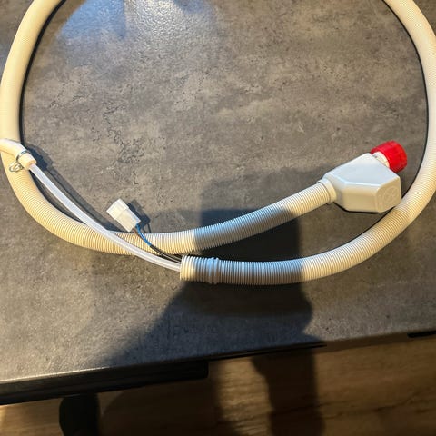 Godt brukt utløpslange. Er et innhakk, men ikke hull. Har brukt slik.