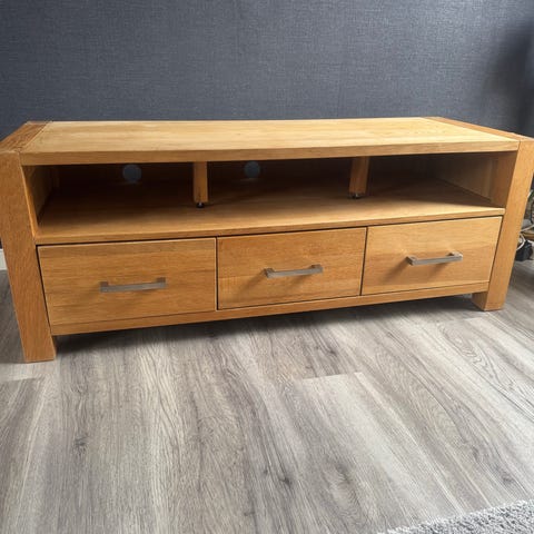 Massiv eik tv benk som er malt hvit selges da jeg har ikke behov for den legger.