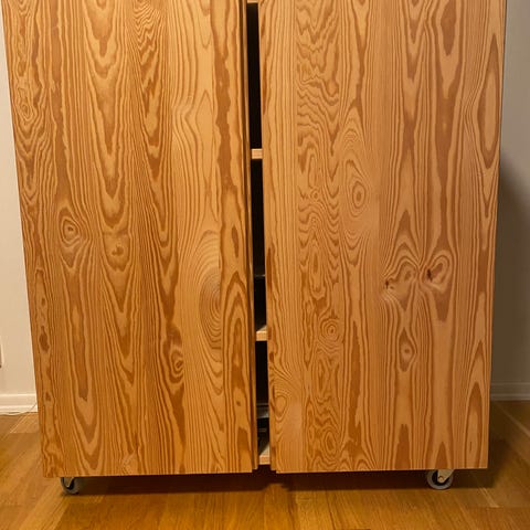Ivar skap på hjul! Vi har brukt utan dørrar på topskapet, men dørrar føljer med. Några bruksmärken, men i øvrigt fint skick.