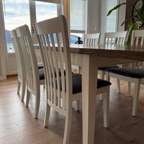 Marthe spisebord med 6 matchende stoler. Solid kvalitet og Pent brukt.Ca 5 år.Røk og dyrefritt hjem.