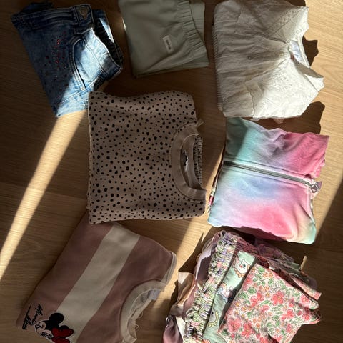 klespakke for jente str 86/92. Med Forbehold om størrelsesforskjell i merker og krymp i vask.