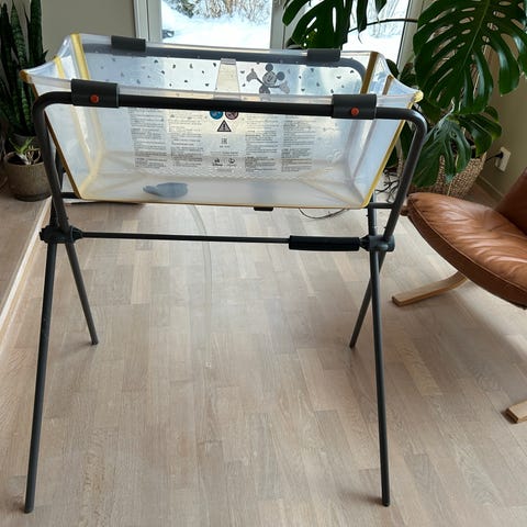 Stokke Flexi Bath baderamme og badekar i hvit. Settet inkluderer en sammenleggbar baderamme som gir støtte til badekaret, samt et fleksibelt badekar som kan brukes til spedbarn og små barn. Produktet er designet for praktisk bruk og enkel oppbevaring.