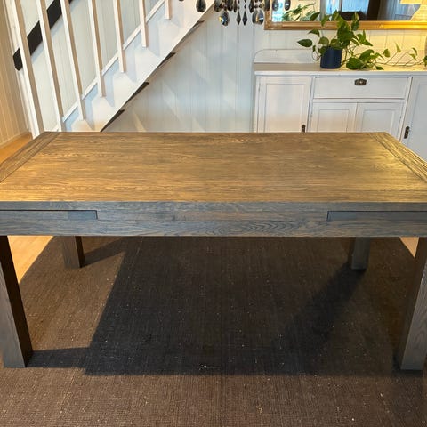 MÖRBYLÅNGA bord har holdbar eikefiner med unikt og naturlig mønster. Det tidløse designet og den robuste konstruksjonen gjør den ideell for hverdagsmiddager både i hjem og offentlige rom.