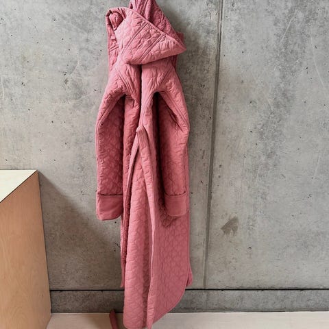 Str S/M. Den er 110 cm fra skulderlange og ned.