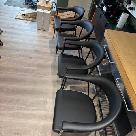 6 stk gode trestoler/kjøkkenstoler. De hvite merkene på bildet er bare støv. Tørker selvfølgelig over de ved evt henting🤗