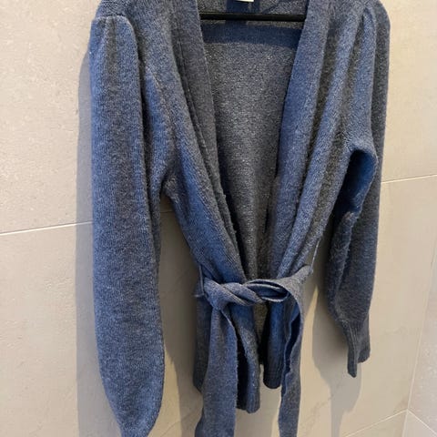 Blå ICHI jakke i akryl og nylon, omslagsjakke. Synlig brukt, hel men med nupper. Størrelse XS. Romslig.