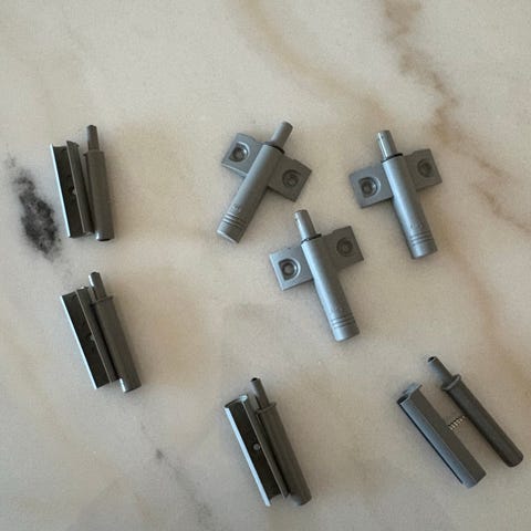 Planen var å bruke denne løsningen for åpning av skap/kjøleskap, men før montering ble det klart at løfteløsningen ikke passet optimalt i vårt kjøkkenoppsett.