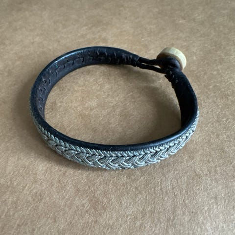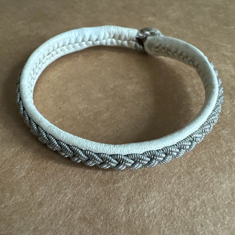 Lengde 19 cm . Ekte skinn og sølv fletting .