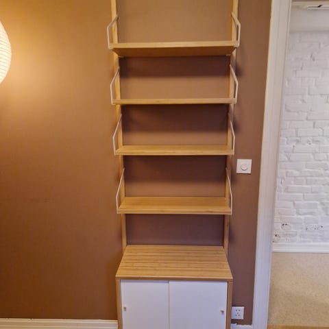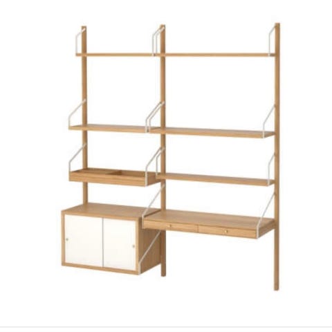 Utgått ikea svalnas - 2 stk. hyller med bredde 61 cm, to korte pinner og en lang pinne. Følger også med diverse oppheng, se bilde
