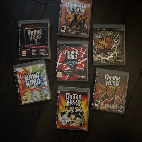 Guitar Hero spillpakke til PlayStation 3 med totalt 7 titler.