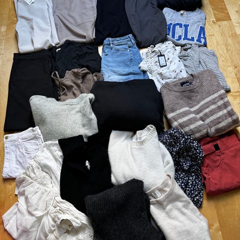 Posen inneholder: 4 skjørt, 6 topper, 2 jakker, 3 gensere/ blazere, 2 dressbukser og 3 jeans og 1 par gant sko i str 39!! Klærene er i str xxs-xs-s. Prisen på pakken utgjør ca 29kr per ting! Ta kontakt ved spørsmål. (Har samme annonse liggende ute på tise)