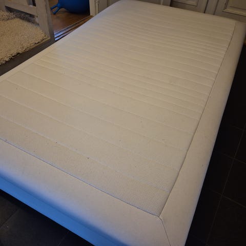 Brukt rammemadrass 90x200cm med overmadrass og daybedtrekk. Brukt som sofa