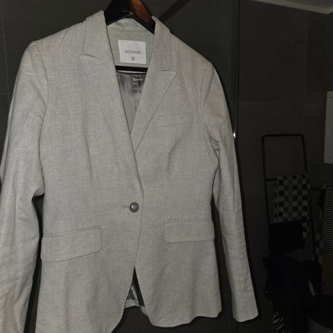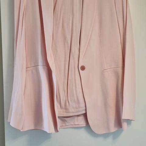 Riccovero blazer i flerfarget/gammelrosa boucle type stoff. Er størrelse 38 men er litt liten i str. for kvinner. Lite brukt