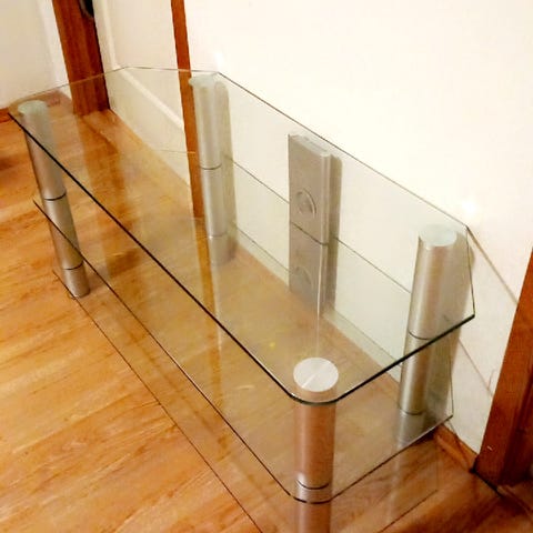 Selger et moderne TV-bord i sort glass med kromfargede ben. Har to romslige hyller for dekoder, spillkonsoll eller annet utstyr. Står stødig og fremstår i pen brukt stand uten store merker (se bilder). Pris kan diskuteres.