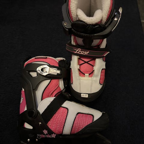 Roces skøyter for barn i størrelse i 30-33. Skøytene er hvite med lilla detaljer og har justerbare stropper for bedre passform.